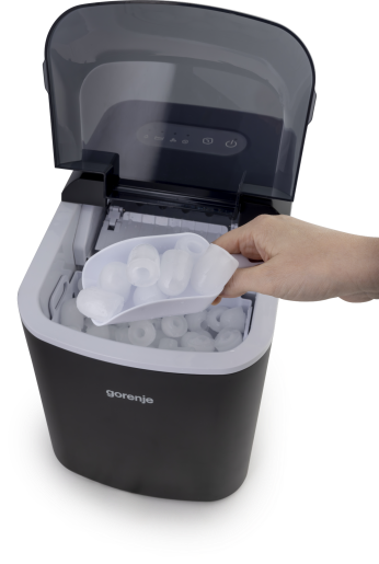 Ако секогаш сакате да имате свеж мраз при рака, едноставно наполнете го резервоарот со вода до ознаката и изберете ја големината на коцките, мали или големи, и апаратот автоматски ќе почне да прави мраз во форма на куршум. Ледоматот од Gorenje е лесен и пренослив, затоа е погоден за домашна употреба, кампување или канцеларија.