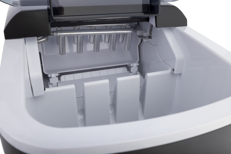 Резервоарот за вода може да собере до 2,1 литри. Индикаторската ламба за нивото на мраз и вода ќе ви каже дали резервоарот треба да се наполни или дали корпата за мраз е веќе полна. Апаратот за мраз е лесен за чистење. Има одвод на дното што го олеснува празнењето. Потоа само треба да ја избришете внатрешноста со сува крпа.