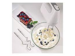 Контролниот дел на горниот дел од миксерот се состои од копче за вклучување/исклучување, турбо копче и копче за исфрлање на маталките. Со моќност до 425 W, овие миксери се доволно моќни за да ви ги дадат посакуваните резултати.